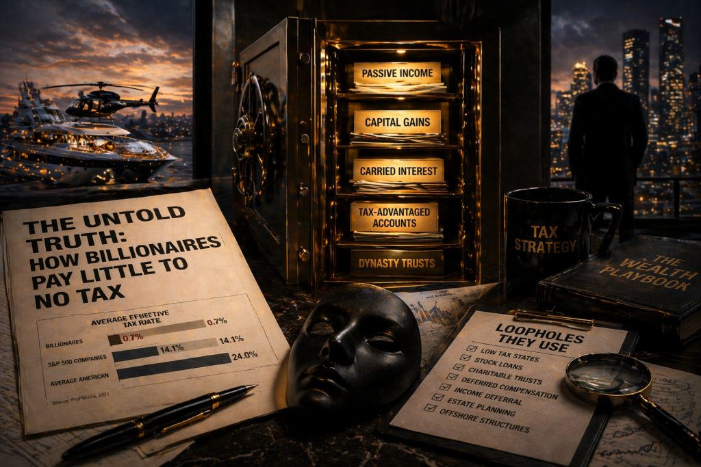 然而,2021年 ProPublica 基于IRS泄密数据的一份调查报告,彻底撕碎了这种“公平”的幻象。顶级富豪的真实税率低到令人发指:沃伦·巴菲特(Warren Buffett)仅为 0.1%,杰夫·贝佐斯(Jeff Bezos)为 0.98%,迈克尔·布隆伯格(Michael Bloomberg)则为 1.3%。在普通人为几十美元的退税精打细算时,这些掌握着全球顶端财富的人,却在一种近乎“税外之地”的真空中运行。这种财富“炼金术”究竟是如何实现的?